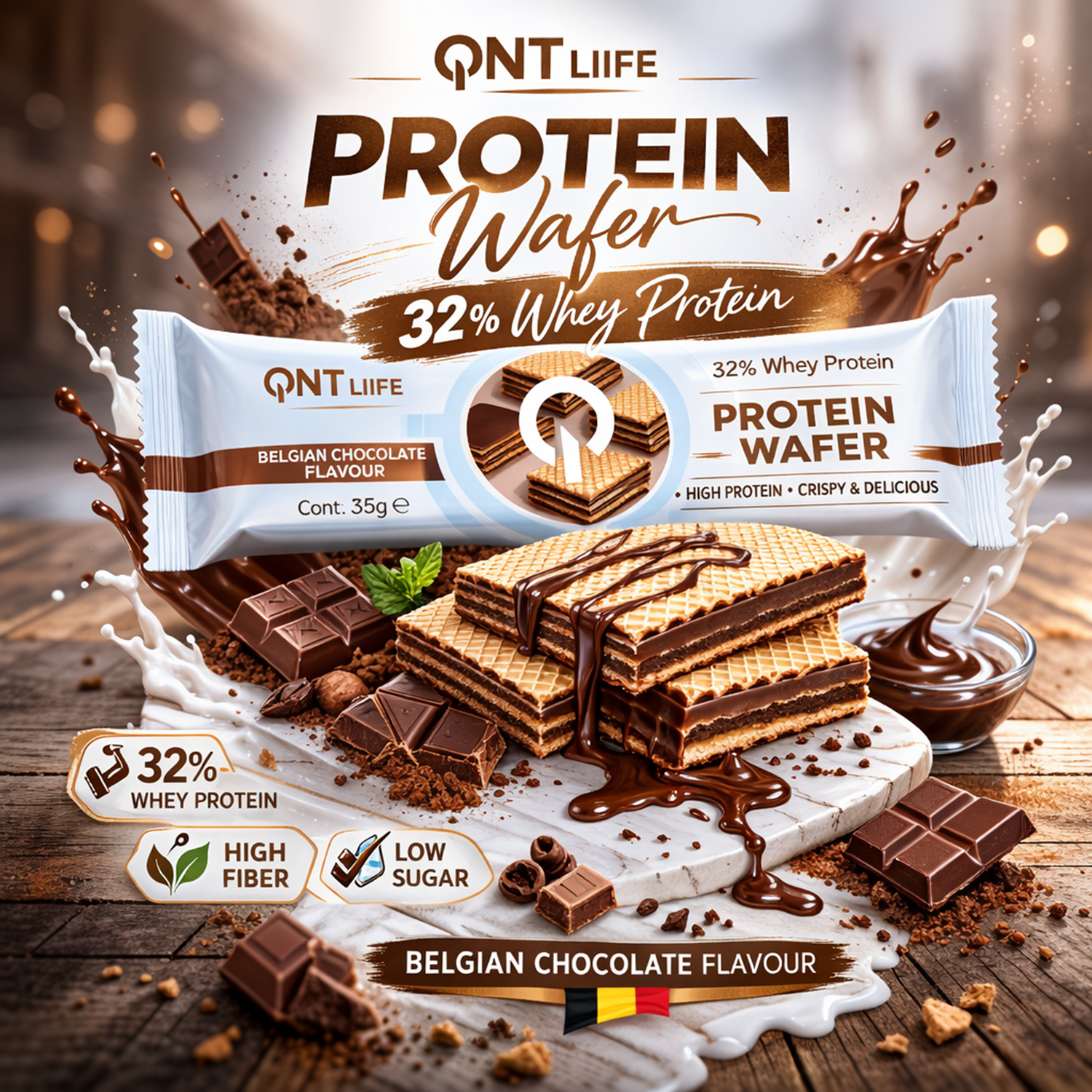 Qnt Protein Wafer Belgian Chocolate 1 x 35 Gr